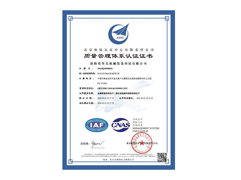 公司通過了GB/T19001-2016質量管理體系認證,體現了公司卓越的質量控制水平和綜合競爭力。